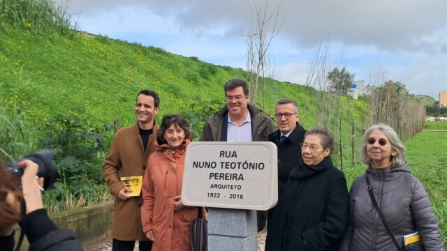 No passado dia 30 de janeiro, no Alto do Lumiar foi inaugurada a Rua Nuno Teotónio Pereira, uma homenagem justa e merecida ao arquiteto que marcou o século XX português. A cerimónia, que coincidiu com o 104.º aniversário do homenageado, contou com a presença de Carlos Moedas, Presidente da Câmara Municipal de Lisboa, Diogo Moura, Vereador com o pelouro da toponímia, Ricardo Mexia, Presidente da Junta de Freguesia do Lumiar, familiares, amigos e admiradores de Nuno Teotónio Pereira.