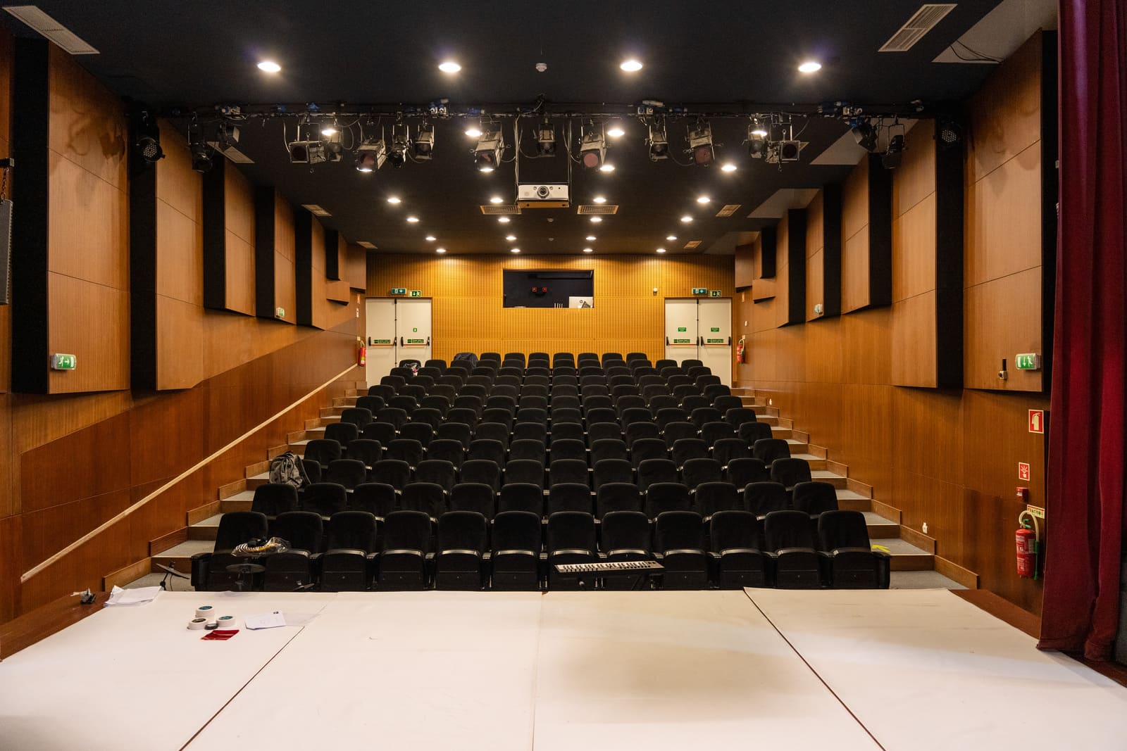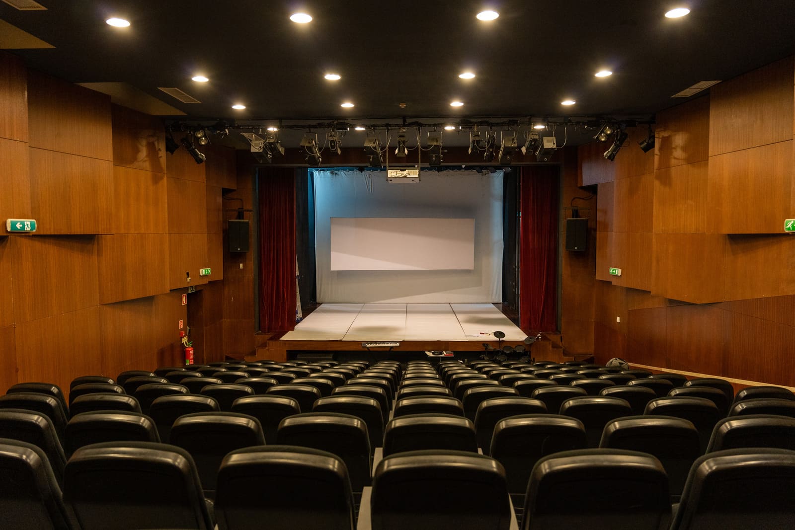 Auditório preparado para eventos musicais, artísticos, conferências, ciclos de cinema, etc.